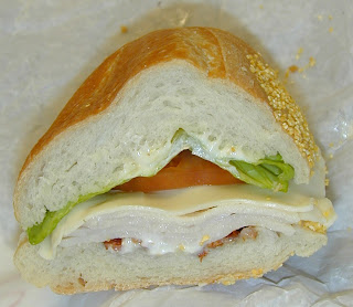 That delicious chewy and crusty bread, the crispy bacon, the crunchy romaine, turkey, fontina cheese and aioli. Aah, how happy you make me.